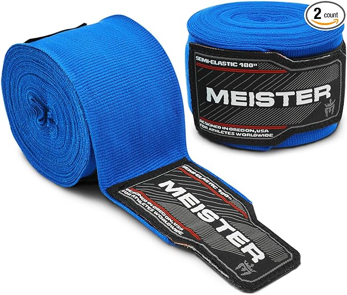 Meister Adult 180" Semi-Elastic Hand Wraps for MMA & Boxing (Pair)
