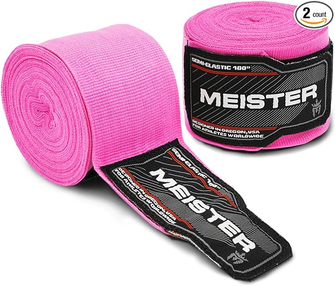 Meister Adult 180" Semi-Elastic Hand Wraps for MMA & Boxing (Pair)