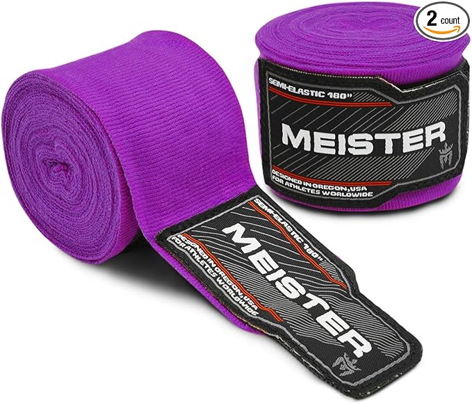 Meister Adult 180" Semi-Elastic Hand Wraps for MMA & Boxing (Pair)