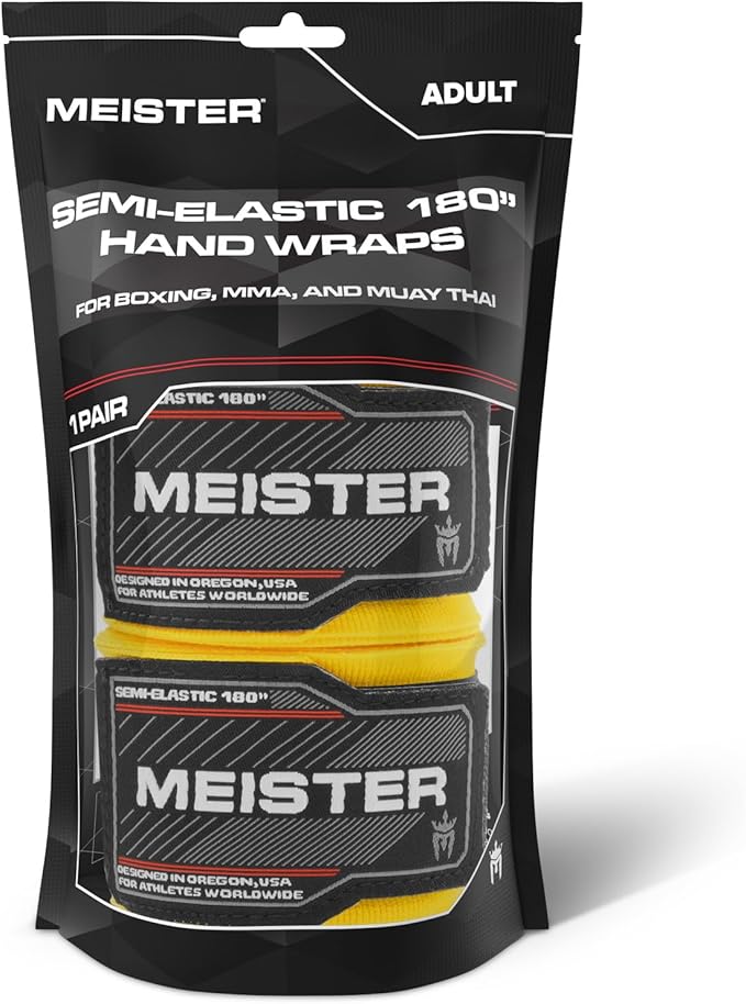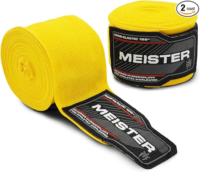 Meister Adult 180" Semi-Elastic Hand Wraps for MMA & Boxing (Pair)