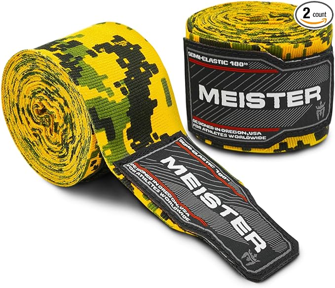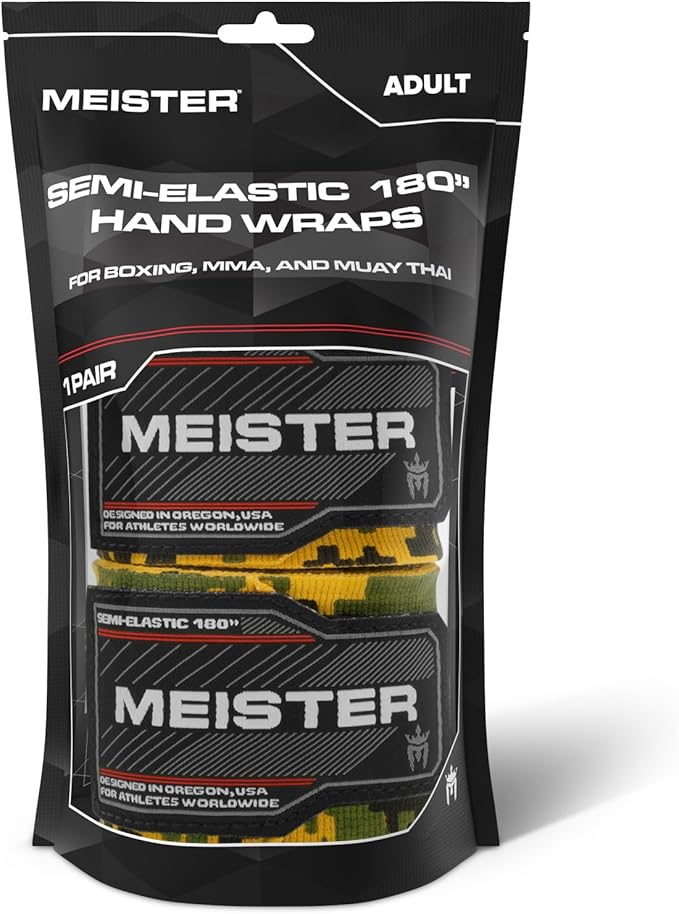 Meister Adult 180" Semi-Elastic Hand Wraps for MMA & Boxing (Pair)