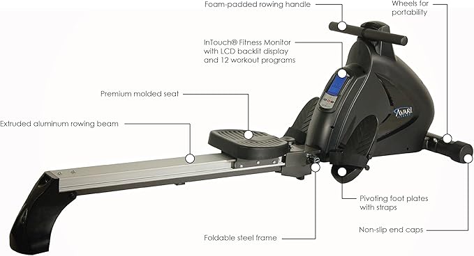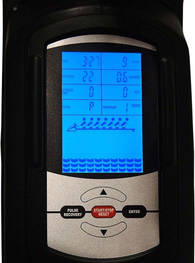 - LCD backlit fitness monitor; Extruded aluminum rowing beam