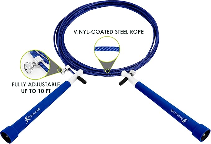 ProsourceFit Speed Jump Rope 10’ Adjustable Length, Super Fast Turning for Cardio, Boxing
