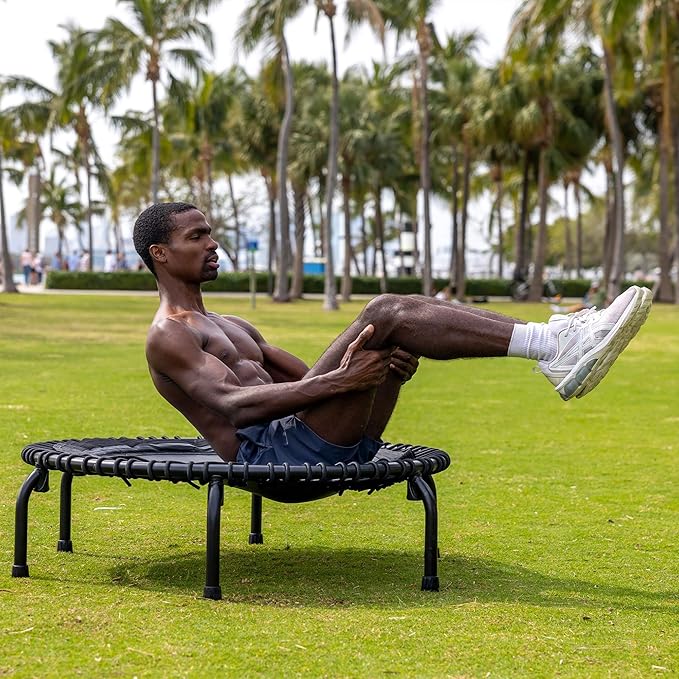 - Fitness trampoline that offers 7 adjustable tension settings that allow changes to mat firmness for a customized bounce, ideal for higher intensity workouts, small group, group, and personal training