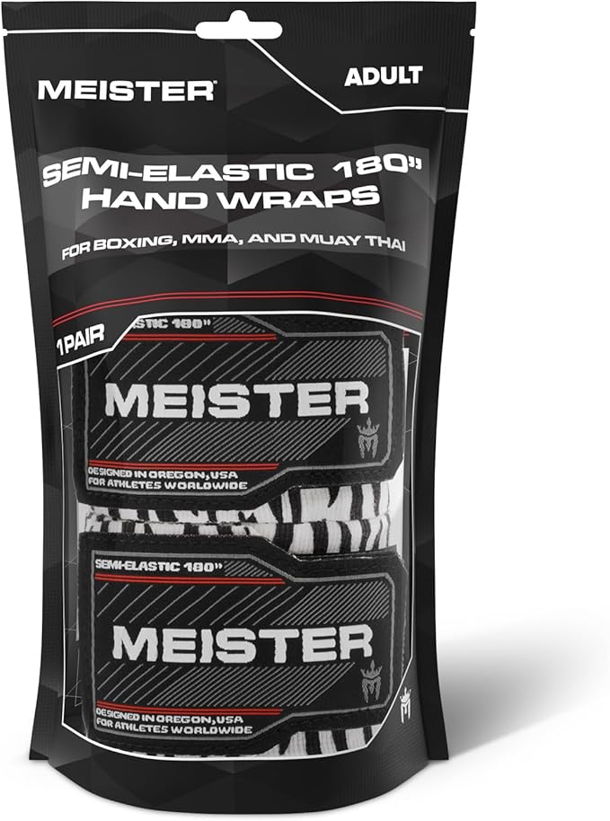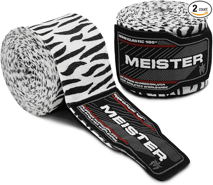 Meister Adult 180" Semi-Elastic Hand Wraps for MMA & Boxing (Pair)