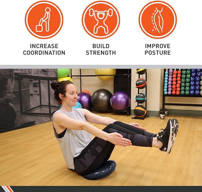 - Can be used as a dynamic cushion to activate major muscle groups or as a standing disc for balance training and lower extremity strengthening