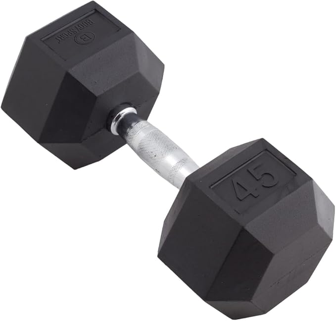 Body Sport Rubber Encased Hex Dumbbell Weight, Single – Dumbbells for Exercises – Strength Training Equipment – Home Gym Accessories – Weight Training