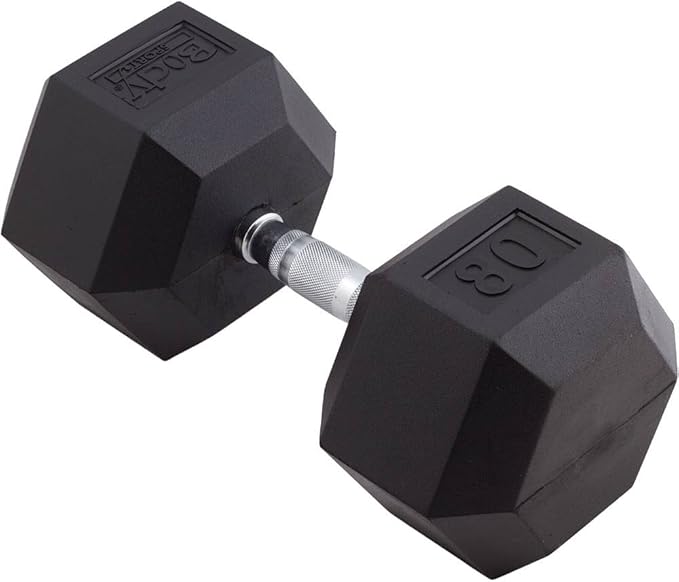 Body Sport Rubber Encased Hex Dumbbell Weight, Single – Dumbbells for Exercises – Strength Training Equipment – Home Gym Accessories – Weight Training