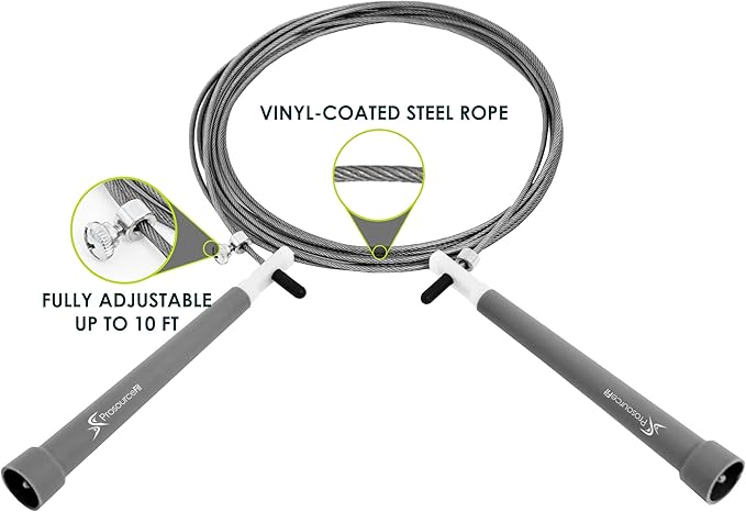 ProsourceFit Speed Jump Rope 10’ Adjustable Length, Super Fast Turning for Cardio, Boxing