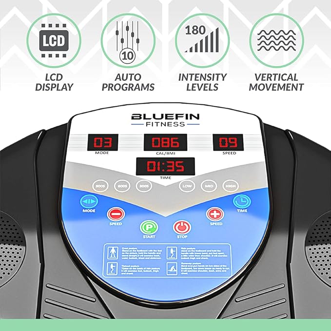 Bluefin Fitness Vibration Platform Pro Model Upgraded Design with Silent Motors and Built in Speakers Build Muscle at Home and Loose Fat