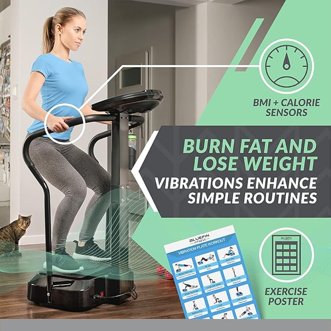 - DROP BODY FAT AND BUILD MUSCLE - The Bluefin Pro Model is designed to target those stubborn fat areas whilst increasing muscle mass at the same time. High-frequency, full body vibrations subconsciously contract the muscles in the body 1000's of times per minute, which results in burning a huge amount of calories, giving you an all over, toned look.