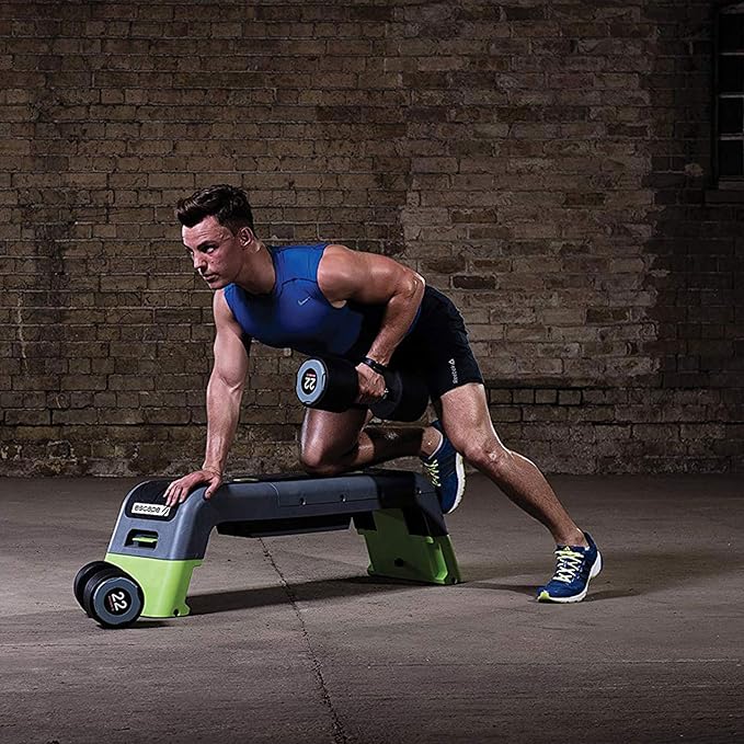 - A weight bench, step, plyometric box and ramp all in one product
