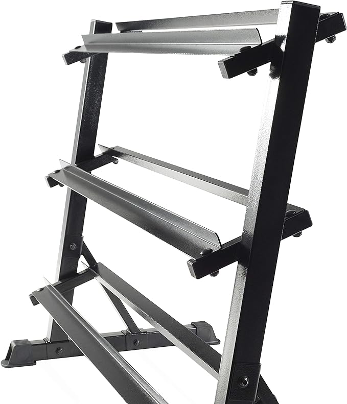 - CONSTRUCTION: Heavy duty steel construction with a black finish; 1,000 pound weight capacity; Three shelves to easily and safely load and unload dumbbells