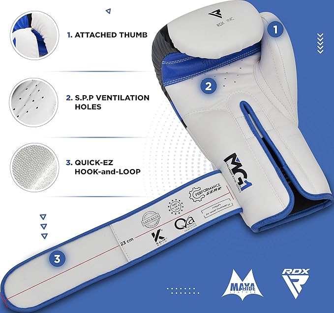 - INCREASED USABILITY AND HIGHER ENDURANCE RDX brings its premium EGO Series Boxing Gloves for tough training and sparring by boxers, kickboxers, and Muay Thai practitioners. The use of Maya Hide leather allows you to use full force without holding back in your boxing training. These punching gloves can be the perfect upgrade to your training and pre-fight exercise. The premium finish makes them the perfect training gloves for men and women alike.