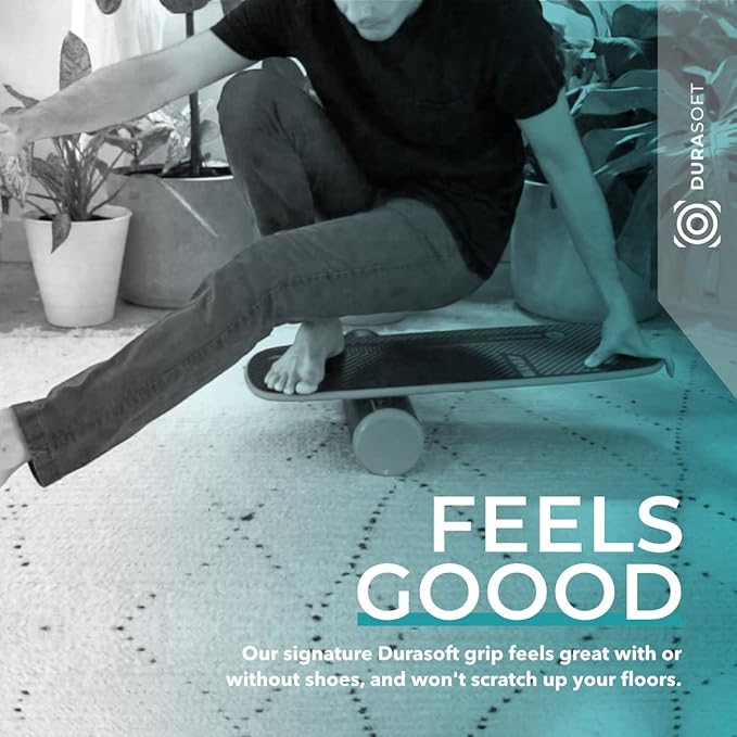 - DURASOFT TRACTION: Our exclusive traction surface is extremely comfortable to use with bare feet, or with shoes, and super durable at the same time. It won’t scratch you or your floors like other boards made with rough griptape.
