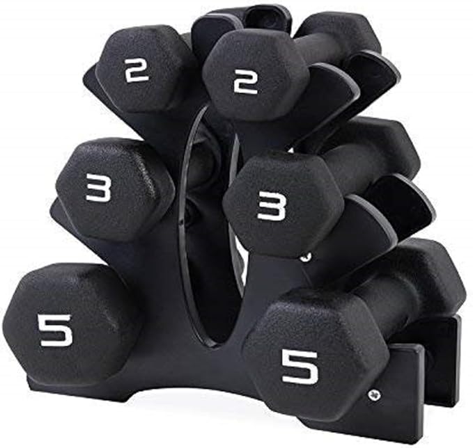 - WHAT’S INCLUDED – A convenient dumbbell storage rack with 3 pairs of dumbbells in 2-pounds, 3-pounds and 5-pounds