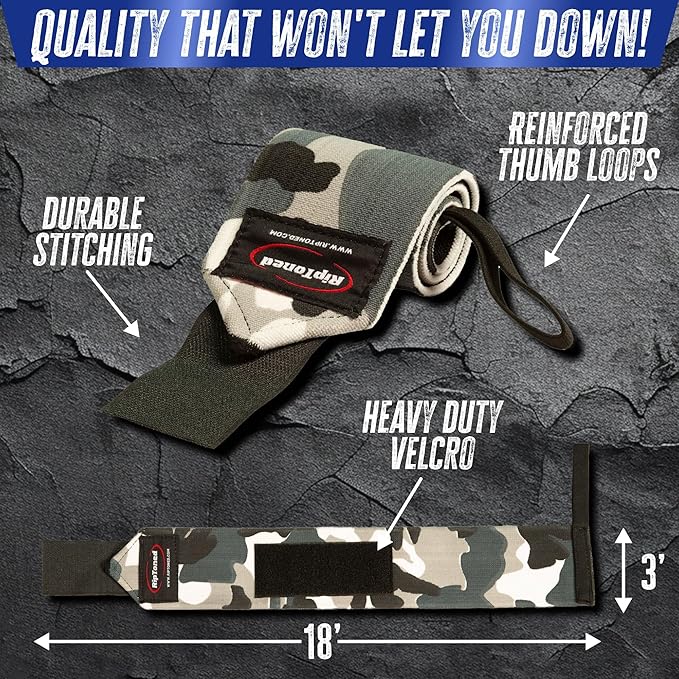 Rip Toned 18” Wrist Wraps - Wrist Straps for Weightlifting - Lift Better, Protect Wrist Pain - Adjustable, Durable, Machine Washable - Wrist Wraps for Weightlifting - USPA Endorsed for Men & Women