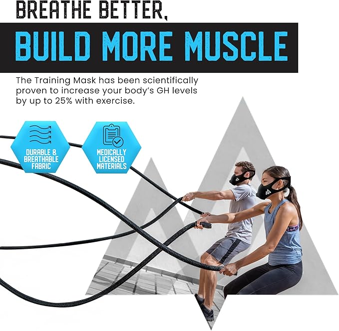 - Boost Athletic Performance: Use the real TrainingMask technology to intensify your breathing, which is directly linked to better fitness and longer workouts. Boost Growth Hormone by Up to 25% During Exercise: Research validates the Training Mask's capacity to increase growth hormone levels by up to 25%, which promotes increased fat burning, muscular growth, and quick muscle recovery after a workout.