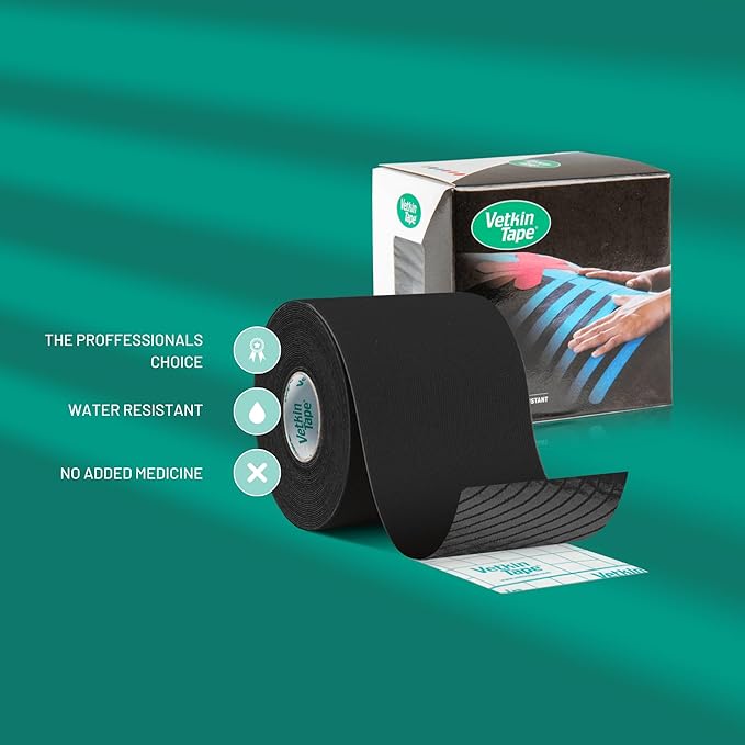 VetkinTape Canine & Equine Kinesiology Tape | Veterinary Medical Tape | Vet Wrap for Joint Support & Pet Care | Self Adhesive Bandage Wrap | Black Tape | 2.4in | (Pack of 1)