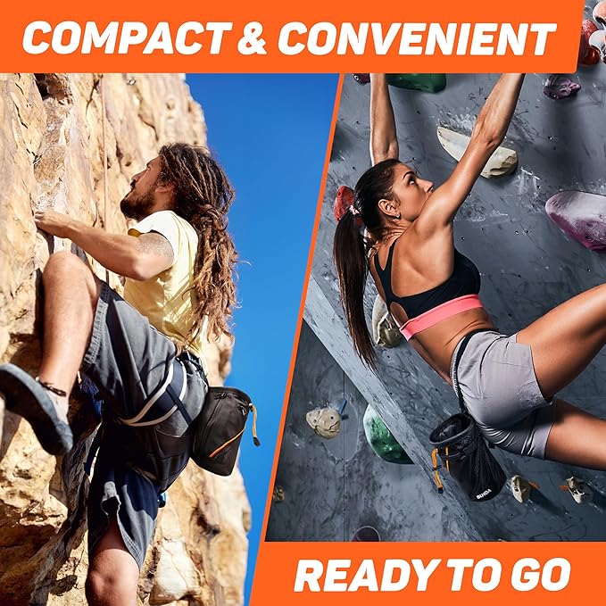 - Chalk Bag For Rock Climbing, WeightLifting, Bouldering, Workouts at the Gym, CrossFit & Gymnastics. Engineered for durability in extreme environments, this lightweight bag has reinforced stitching and waterproof fabric. Also comes with a quick-clip belt for easy wearing & two loops for seamless attachment to harnesses or carabiners – convenience & performance for all your adventures.