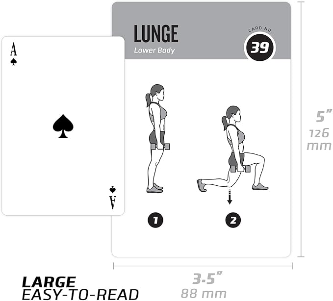 - Large Size - These 3.5" x 5" jumbo workout routine cards are easy to see from a distance without squinting, and still perfectly compact enough to fit into your gym bag or luggage.