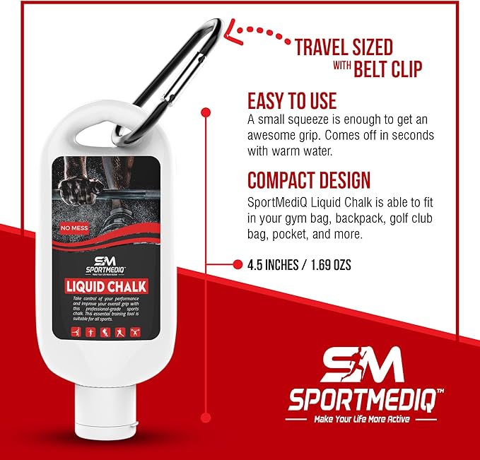 Pro Grade Liquid Chalk – 1 Pack - Mess Free Professional Hand Grip for Gym, Weightlifting, Rock Climbing, Gymnastics, Rock Climbing - Dries in Seconds - 1.69oz Travel Size with Belt Clip