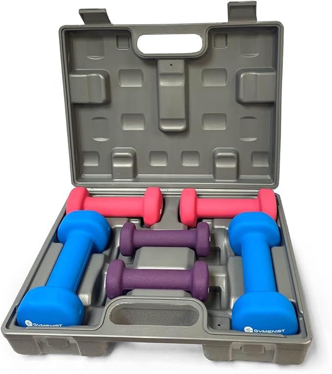 Gymenist Dumbbell Set With Hard Plastic Case Includes 3 Pairs And A Hard Travel Carry Storage Case
