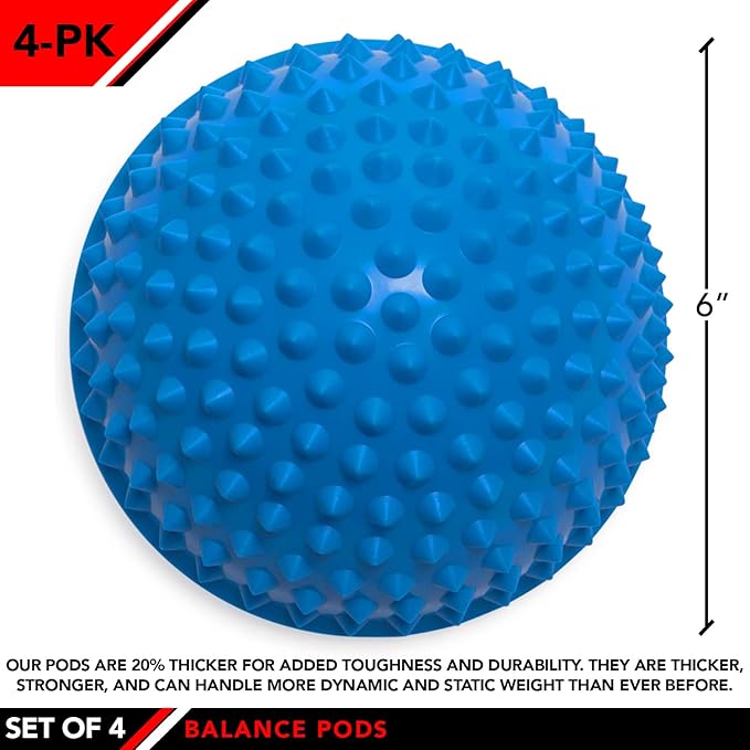 - AGILITY TRAINING: Set of 4 balance pods for balance and agility training feature a 6-inch diameter done that can be used flat side up or textured side up, perfect for improving stability and myofascial release