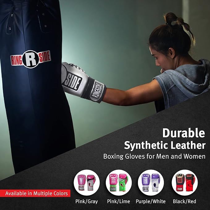 - Boxing Gloves: Fight your way to the top with Ringside’s Apex Boxing Bag Gloves. These durable synthetic leather gloves will help you push your body to the limit every time and allow you to reach your fitness and athletic goals.