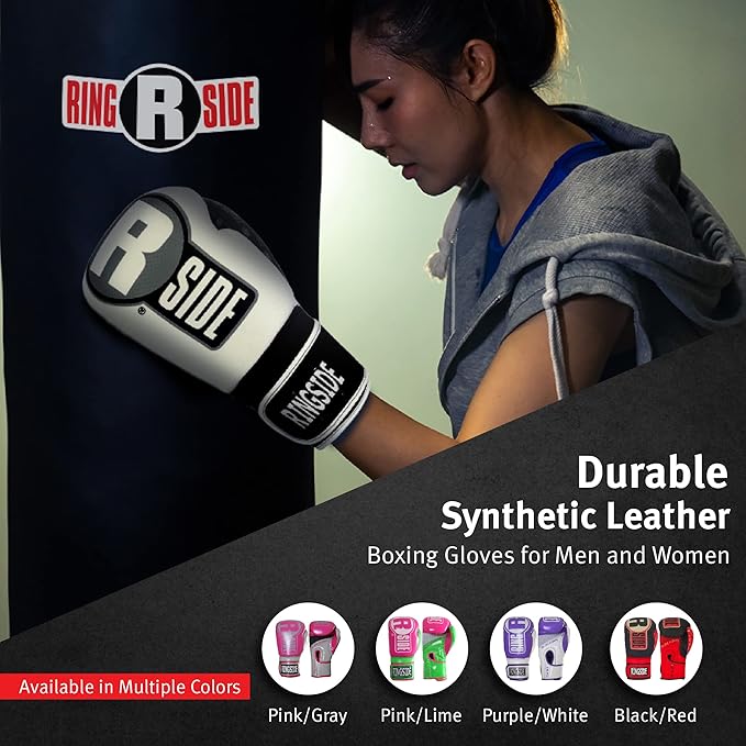 - Boxing Gloves: Fight your way to the top with Ringside’s Apex Boxing Bag Gloves. These durable synthetic leather gloves will help you push your body to the limit every time and allow you to reach your fitness and athletic goals.