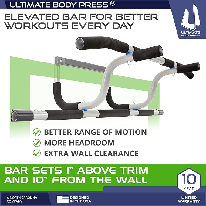 Ultimate Body Press XL Doorway Pull Up Bar with Elevated Bar & Adjustable Width