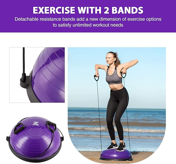 ZELUS Balance Ball Trainer with Resistance Bands and Foot Pump, Inflatable Yoga Ball for Home Gym Workouts, 23 Inch Exercise Half Ball for Balance Training Core Strength Fitness More, 330lb Cap