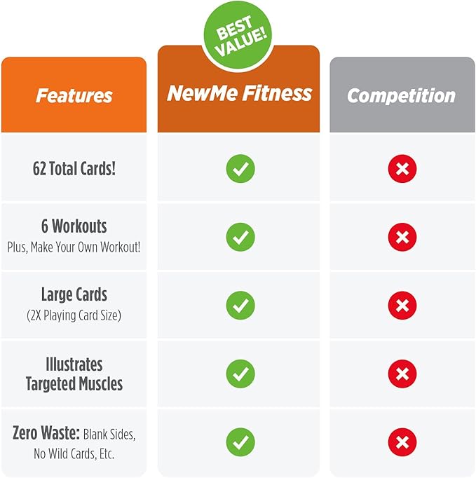 - Easy to Follow - All of our exercise cards come with detailed illustrations and instructions for a no-fuss home workout.