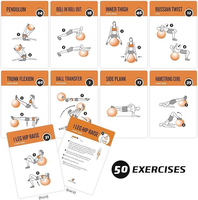 - Full Set - This complete fitness deck includes 50 different exercise cards that you can mix and match to create a workout. You can even create your own custom routines and circuits!