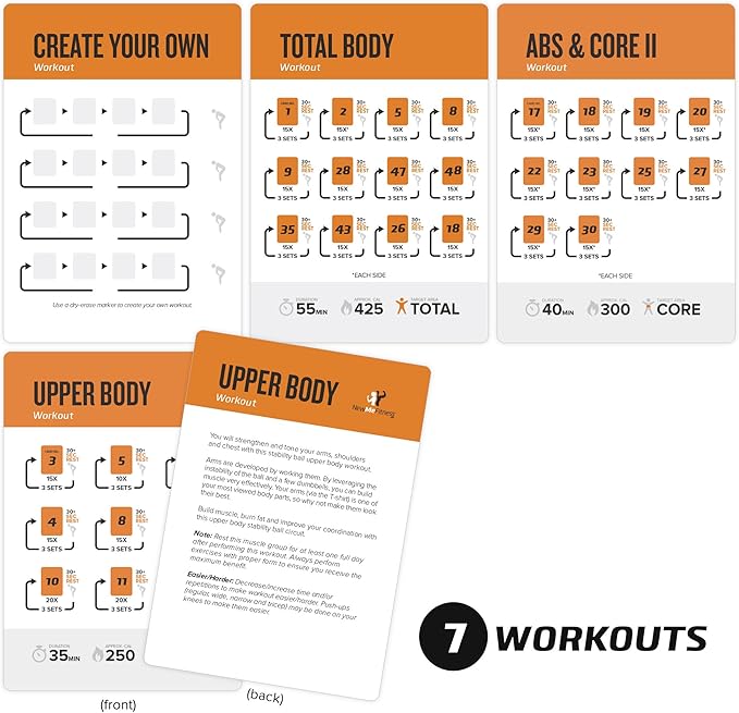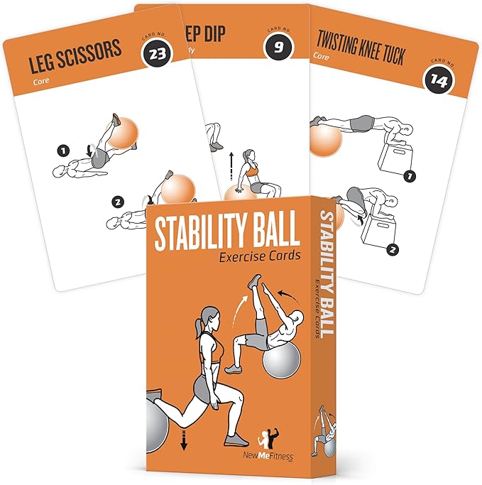NewMe Fitness Stability Workout Cards - Instructional Fitness Deck for Women & Men, Beginner Fitness Guide to Training Exercises at Home or Gym
