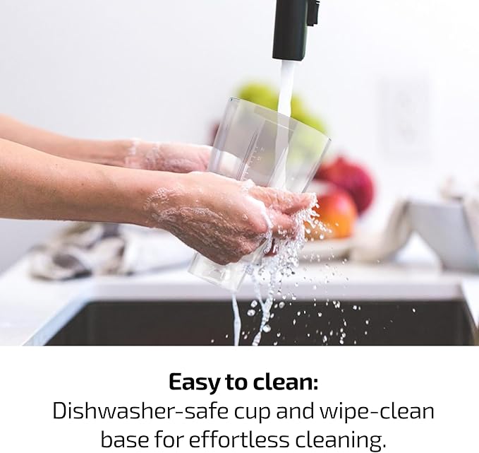 - COMPACT & EASY TO CLEAN – This portable personal blender is perfect for home, office, travel, dorms and more. It fits most cup holders and it tucks away in a cabinet for easy storage. The blender cup is dishwasher-safe and the base can be cleaned easily by wiping it with a damp cloth.