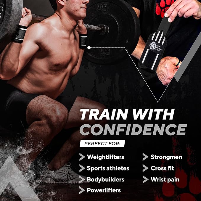 - Versatile Performance: Ideal for various strength training activities including bodybuilding, powerlifting, and Cross Fit, these wrist wraps are a versatile addition to any gym bag. At 17.5 inches, our wraps are the shortest and the easiest to put on and take off. Whether you're hitting heavy squats, bench presses, or overhead lifts, our wrist wraps offer reliable reinforcement, allowing you to focus on maximizing your performance.