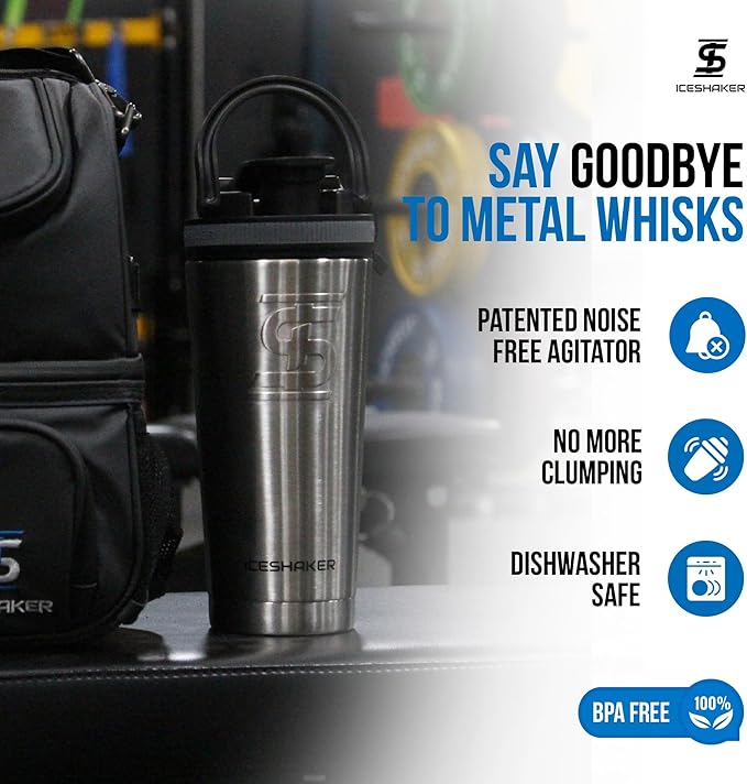 Ice Shaker Insulated Stainless Steel Shaker Bottle | 26oz , Stainles Steel | Cold for 30+ Hours | Insulated Cup with Twist-on Agitator | Odor-Free Shaker Cup for Protein Shakes, Water, Smoothies, Cocktails