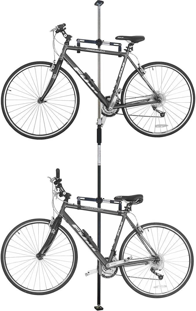 - Patented Dual Bike Stand: This bike storage rack securely stores two bikes with its unique bracing design between the ceiling and the floor
