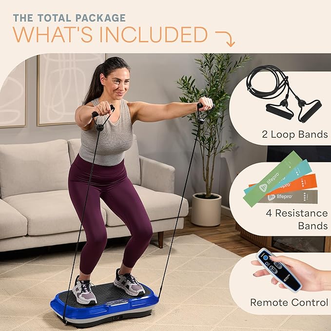 - Home Workout Equipment for Oscillation Movement - Through oscillation movement, the Lifepro Waver Vibration Plate Exercise Machine improves muscles, energy balance, circulation, and reduces joint tension. Get started with everything you need, including 2 loop bands, 4 resistance bands, remote control, and user guide. Easily stows away under your bed or furniture.
