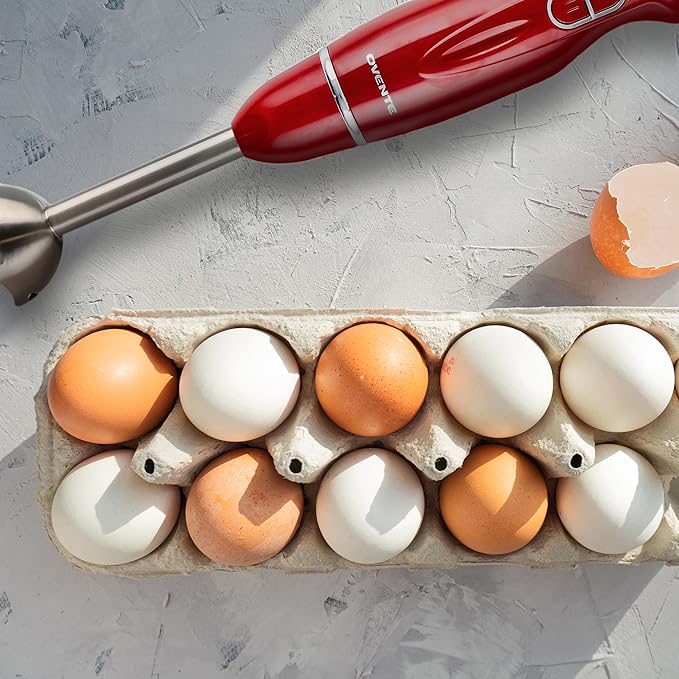 OVENTE Immersion Hand Blender, 300W Electric Handheld Portable Stick Mixer with 2 Mixing Speed and Stainless Steel Blades for Effortless Blending Smoothies, Shakes, Puree or Baby Food, Red HS560R