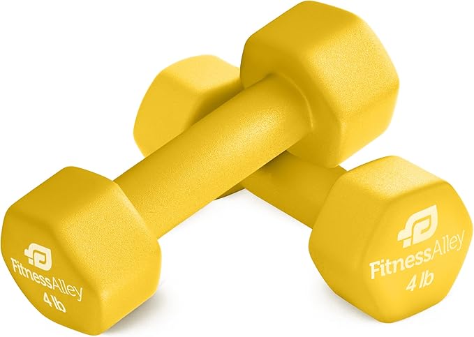 - The box includes 2 Dumbbells that comes in 4LB Size and Yellow Color. Construction is of cast iron, which is of superior quality along with neoprene gripping that allows lifting of heavyweights simpler and easier
