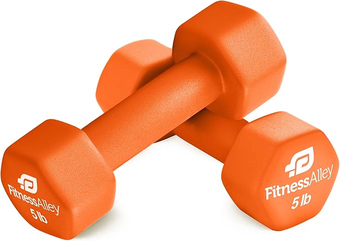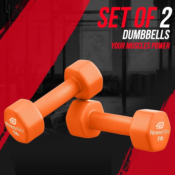 - The box includes 2 Dumbbells that comes in 5LB Size and Orange Color. Construction is of cast iron, which is of superior quality along with neoprene gripping that allows lifting of heavyweights simpler and easier
