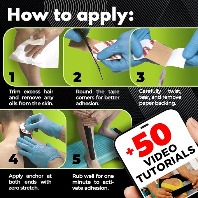 - 50 FREE VIDEOS INCLUDED – We provide 50 FREE, step-by-step instructional videos of physical therapy tape applications for the most common muscle and joint injuries to ensure you find the right one for correct kinesiology tape waterproof usage and the fastest recovery.