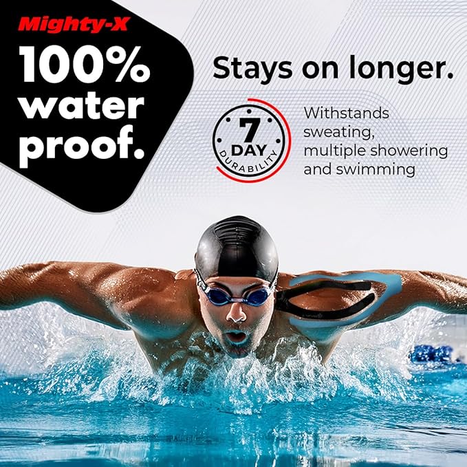 - 100% WATERPROOF – Mighty-X kinetic tape for knee pain is designed to withstand heavy sweating and multiple showers. The nylon kinesiology tape waterproof material doesn’t absorb moisture and dries quickly, so you can get back to your routine right after a shower.