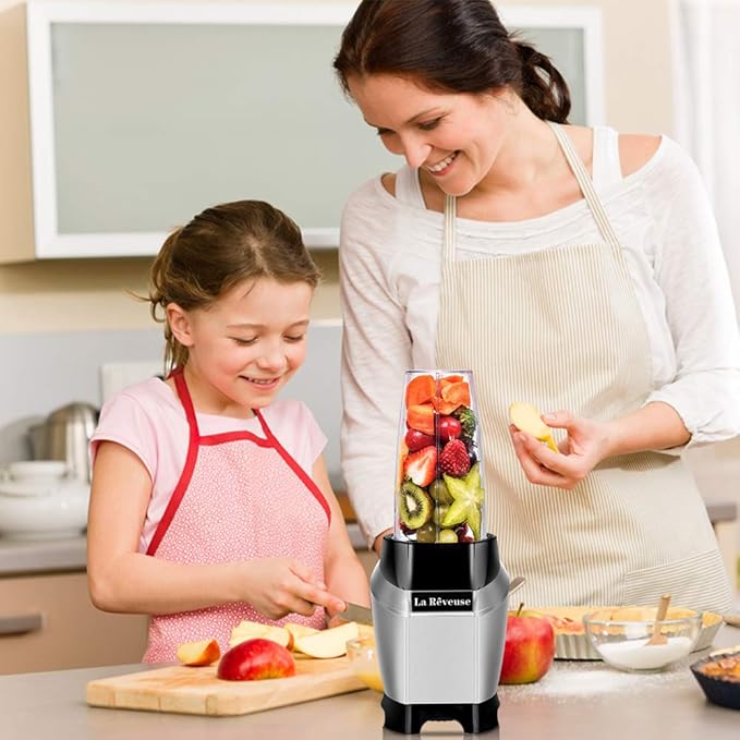 La Reveuse Personal Blender for Shakes and Smoothies 1000 Watt with 24 oz BPA-free Portable Travel Bottle, Dishwasher Safe (Silver)