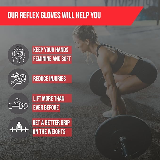 Reflex Workout Gloves for Women - Gym Gloves for Women Into Weights, HIIT, Strength Training - Weightlifting Gloves for Women with Full Palm Protection