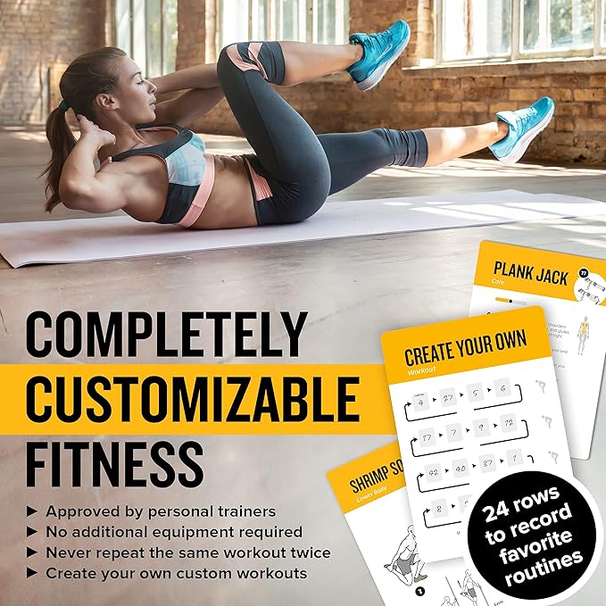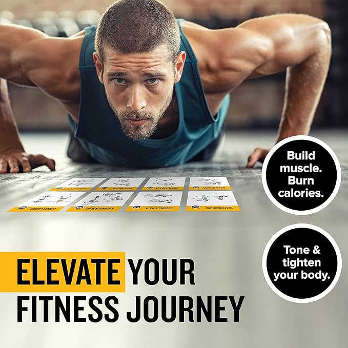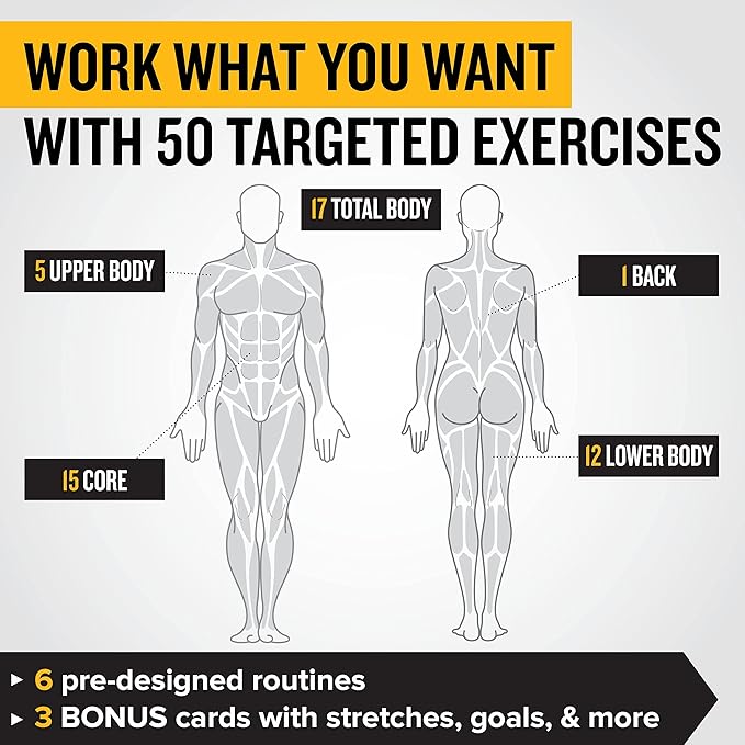 - Full Set - This complete fitness deck includes 50 different exercise cards that you can mix and match to create a workout. You can even create your own custom routines and circuits!