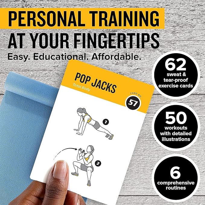 - Easy to Follow - All of our exercise cards come with detailed illustrations and instructions for a no-fuss home workout.
