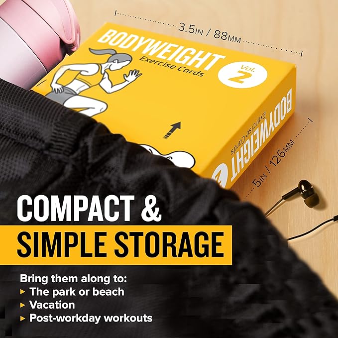 - Large Size - These 3.5" x 5" jumbo workout routine cards are easy to see from a distance without squinting, and still perfectly compact enough to fit into your gym bag or luggage.